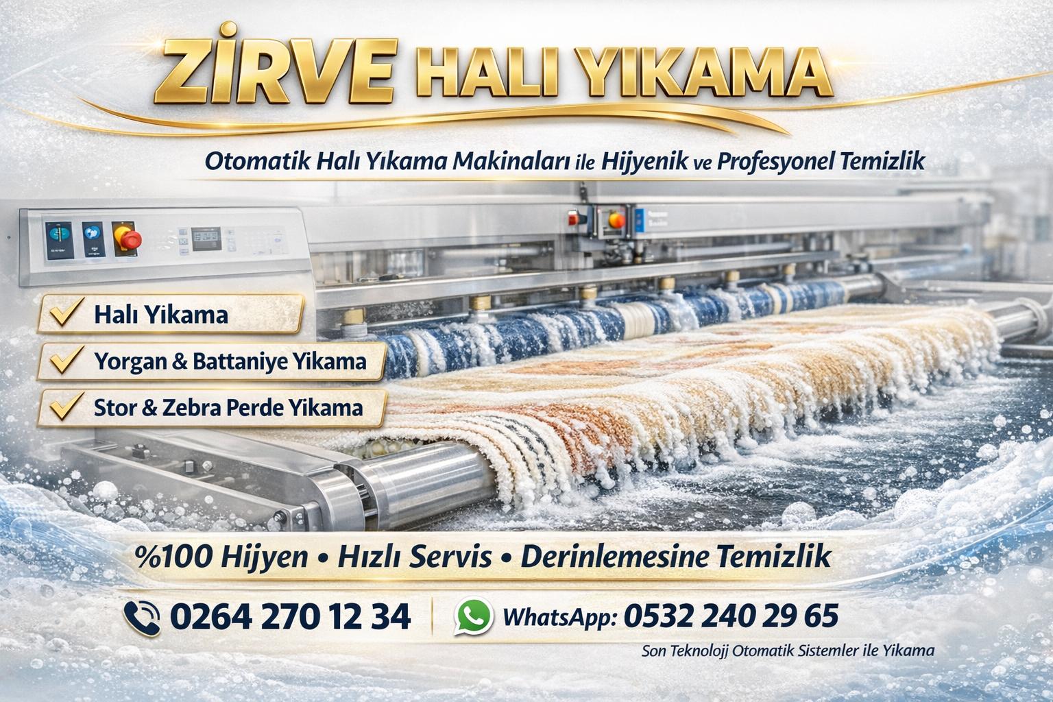 Sakarya Zirve Halı Yıkama olarak, halı, battaniye, yorgan, yatak, koltuk, stor ve zebra perde gibi ev tekstil ürünlerinin profesyonel yıkama hizmetini en uygun fiyatlarla sunuyoruz.